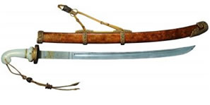 ☆制式兵器:通常被人們稱做官造的兵器。指各期軍隊武官所配備的制式武器,這些武器鍛造精良,工藝規(guī)范,裝飾美觀,通常會出現(xiàn)金銀錯工藝或鎏金銀工藝、鏤空鑄造工藝、鏨刻工藝等。鞘室一般以裹革、髹漆、彩繪等進(jìn)行裝飾。銘文、銘刻也多有出現(xiàn),有一定的存世量。