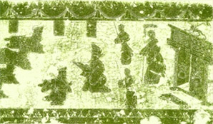 1953年的一次考古發(fā)掘,又將“宋代說”否定了。當(dāng)時(shí),在山東沂南發(fā)現(xiàn)的一座漢墓中,人們從墓前室西壁橫額的畫像上找到了“算盤”:”:圖中有一人跪在地上,雙手捧著長方板,向主子做奉獻(xiàn)狀,似乎在報(bào)告計(jì)算結(jié)果。東漢著名數(shù)學(xué)家徐岳所撰《數(shù)術(shù)記遺》中已提到了“珠算”,這也是中國數(shù)學(xué)史上最早的“珠算”概念。