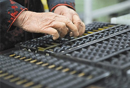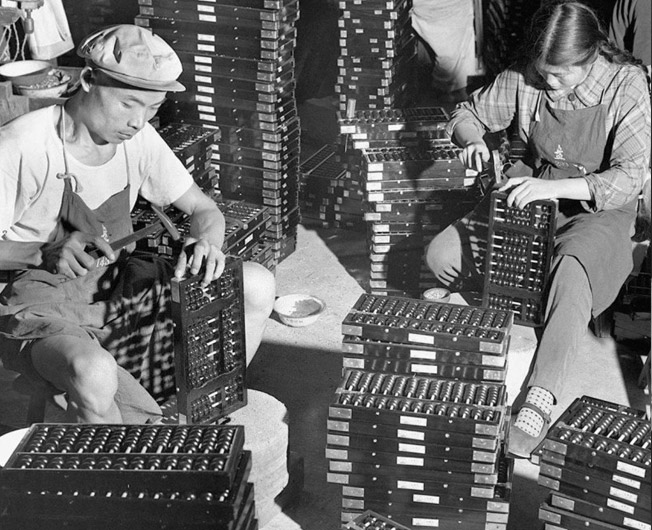 6. 算盤是小學(xué)上數(shù)學(xué)課不可缺少的學(xué)習(xí)用品。 圖為上海算盤廠大批生產(chǎn)一種價(jià)格便宜的13位大號算盤,供應(yīng)農(nóng)村小學(xué)生用。(新華社記者 張萍 攝 1965年8月24日 發(fā))