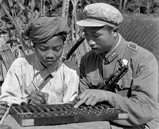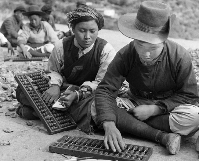 2. 一千多年來,珠算始終是一項(xiàng)技能,人們廣為學(xué)習(xí)。圖為云南省迪慶藏族自治州德欽縣對農(nóng)村干部進(jìn)行培訓(xùn)。會計(jì)訓(xùn)練班的藏族學(xué)員在學(xué)習(xí)珠算。(新華社記者 王傳國 攝 1961年11月29日 發(fā))