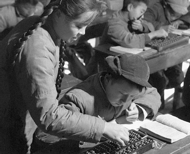 7. 珠算從娃娃抓起,幼兒園,小學(xué),中學(xué)的孩子們都學(xué)習(xí)打算盤。圖為江蘇省吳縣胥口公社胥口農(nóng)業(yè)中學(xué)增設(shè)珠算課。初二學(xué)生在果上學(xué)珠算。(新華社記者 劉棲梅 攝 1961年12月22日 發(fā))