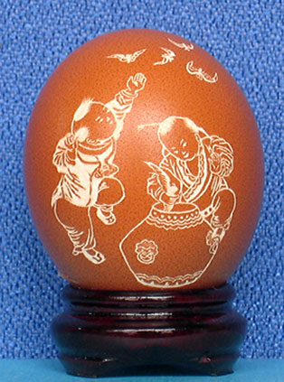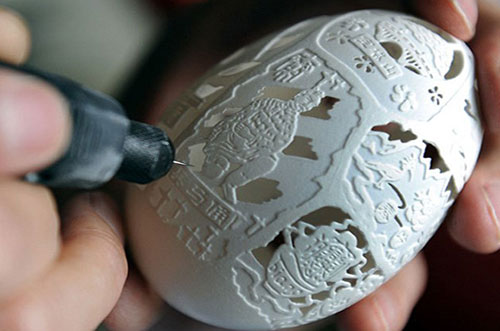 蛋雕藝術(shù)簡(jiǎn)稱“蛋雕”,行業(yè)對(duì)蛋雕藝術(shù)的定義是:“以禽蛋蛋殼的自然色彩或著染色彩為基調(diào)、采用各種雕刻技法和雕刻方法在其表面上鏤刻造型、加工禽蛋雕刻藝術(shù)品、滿足審美要求、反映社會(huì)生活的一門視覺(jué)藝術(shù)”。