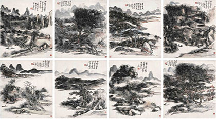 潘天壽繪畫題材包括鷹、荷、松、四君子、山水、人物等,每作必有奇局,結(jié)構(gòu)險中求平衡,形能精簡而意遠;勾石方長起菱角;墨韻濃、重、焦、淡相滲疊,線條中顯出用筆凝煉和沉健。[詳細]