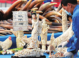 2014年1月6日,中國(guó)國(guó)家林業(yè)局和海關(guān)總署6日在中國(guó)南部的廣東省東莞市,集中銷毀了近年來(lái)在執(zhí)法行動(dòng)中查沒(méi)的6.1噸象牙及其制品。這是中國(guó)首次公開(kāi)銷毀象牙。[詳細(xì)]