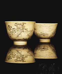 中國(guó)古代流傳下來(lái)的象牙藝術(shù)品,曾在國(guó)際藝術(shù)品市場(chǎng)上風(fēng)光多年。牙雕作品的拍賣價(jià)格在2010年至2011年攀升至最高峰。在倫敦佳士得2010年的秋拍中,風(fēng)格類似的一對(duì)清18世紀(jì)御制題詩(shī)象牙碗估價(jià)60萬(wàn)英鎊至80萬(wàn)英鎊,最終以228萬(wàn)英鎊成交,創(chuàng)造了中國(guó)牙雕藝術(shù)品拍賣的全球最高價(jià)。