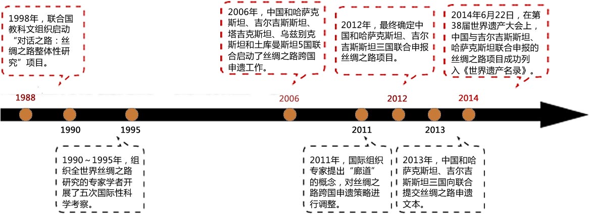 6月22日,在第三十八屆世界遺產(chǎn)大會(huì)上,中國(guó)、哈薩克斯坦、吉爾吉斯斯坦跨國(guó)聯(lián)合申報(bào)的絲綢之路項(xiàng)目正式列入世界遺產(chǎn)名錄。[詳細(xì)]