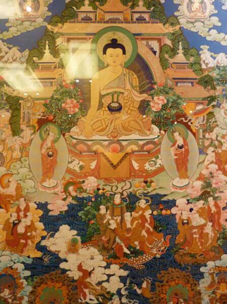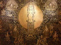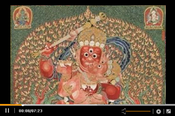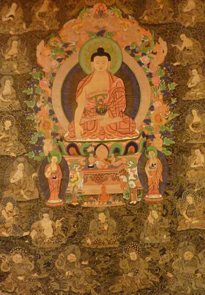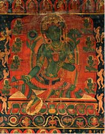 日本東方研究會的田中公明表示,唐卡是曾在印度繁榮一時的軸裝佛畫,后被傳入西藏。然而將形成于印度的佛教經(jīng)典內(nèi)容忠實繪制出來的實例迄今卻寥寥無幾,只有在絲綢之路的綠洲——黑水城出土的12—13世紀(jì)的一幅唐卡被認(rèn)定為寶樓閣曼荼羅,它處于唐卡與曼荼羅的中間形態(tài),是敘景式曼荼羅之一。[詳細(xì)]