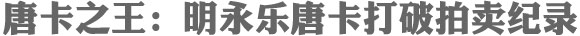 2014年,香港佳士得2014年秋拍上,通過22分鐘的競拍角逐,明永樂年御制刺繡“紅夜摩”巨幅唐卡以3.48億港元(超過2.78億人民幣)的價格成交,創(chuàng)下了中國藝術(shù)品在所有國際拍賣行拍賣的最高紀(jì)錄。[詳細(xì)]