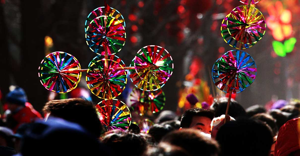| 各式風(fēng)車在人群中迎風(fēng)轉(zhuǎn)動(dòng)。 |