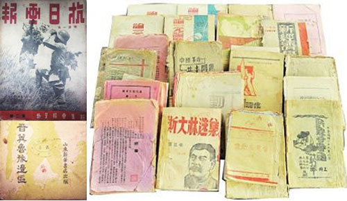 所謂“抗戰(zhàn)文獻(xiàn)”,主要指1931年“九一八事變”至1945年8月日本投降期間由國共兩黨及民間各社會(huì)團(tuán)體發(fā)行的各種文獻(xiàn)資料,其中包括兩黨領(lǐng)袖著作、黨組織各類文件及抗日根據(jù)地出版的各種書籍和報(bào)紙雜志等等。“抗戰(zhàn)文獻(xiàn)”中最受市場青睞的是1945年前由各根據(jù)地出版的早期毛澤東著作,包括各種單行本、選集本等,它們是“抗戰(zhàn)文獻(xiàn)”的強(qiáng)勢龍頭品種。戰(zhàn)爭時(shí)期革命軍隊(duì)出版物則是另一個(gè)值得關(guān)注的“抗戰(zhàn)文獻(xiàn)”板塊。由于眾所周知的原因,解放區(qū)出版物留存下來的數(shù)量并不多,而紅軍、八路軍、新四軍等早 中期出版的書刊更屬鳳毛麟角,是“抗戰(zhàn)文獻(xiàn)”收藏中的珍罕之物。[詳細(xì)]