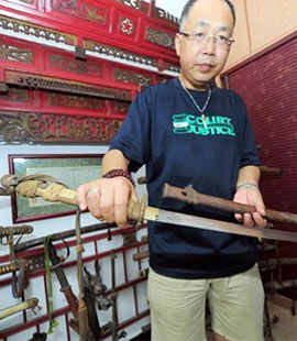 卞建華所藏,抗戰(zhàn)時(shí)期中國軍隊(duì)使用的大刀數(shù)量最多,而他視為珍寶的砍刀共有27件,其中不乏漢陽兵工廠、第二十四兵工廠、第二十一兵工廠等中國兵工廠生產(chǎn)的制式砍刀。[詳細(xì)]