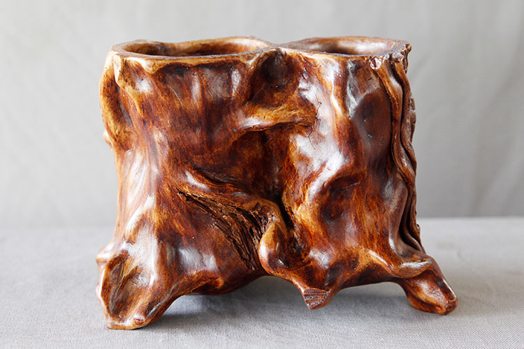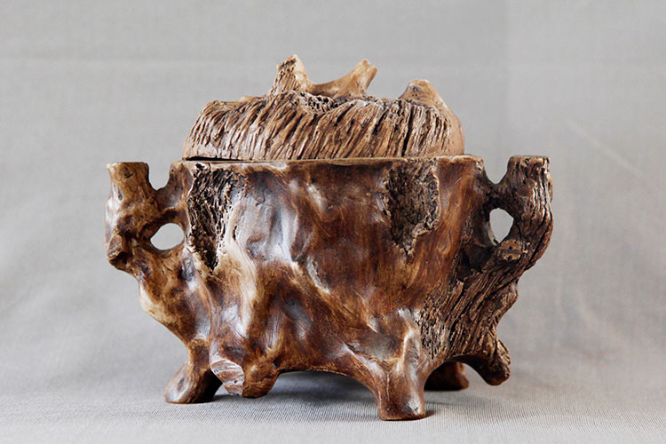 枯木陶的創(chuàng)作基礎(chǔ)源于大自然,仿照枯木的樹結(jié)、樹皮等,甚至描摹出蟲咬的紋路和裂紋,通過陶土直接在樹上按壓成模,再根據(jù)模樣進(jìn)行藝術(shù)加工,制成現(xiàn)在看到的枯木陶作品。 與其他制陶工藝相比,“枯木陶”的制作有著特殊性,雖然它歸屬于“仿生陶類”,但它體現(xiàn)的最終效果是十分逼真的。在沒有親自用手撫摸的情況下,基本上看不出它是陶器。這就是它的絕妙之處。枯木陶的制作原料是產(chǎn)自通州運(yùn)河邊的澄漿泥,可謂是通州文化的象征,曾作為通州直隸府饋贈(zèng)中外人士的政府性禮物。如今通州民間藝術(shù)家協(xié)會(huì)也多用枯木陶作為饋贈(zèng)中外友人的官方禮物。[詳細(xì)]