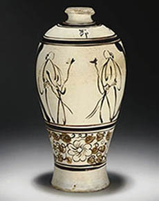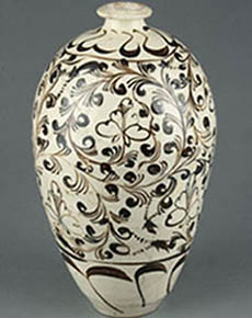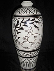 磁州窯梅瓶是我國古代陶瓷藝術(shù)的名貴品種。磁州窯梅瓶無論是造型之優(yōu)美,還是紋飾之秀麗,都給人以無盡美感與藝術(shù)享受,美不勝收。梅瓶造型特征為小口、圓唇、短頸、豐肩、體修長及圈足等。梅瓶制品巧奪天工,吸收了以往各時(shí)代的文學(xué)修養(yǎng)與藝術(shù)養(yǎng)分,因而具有美輪美奐的審美價(jià)值。目前,國內(nèi)外陶瓷博物館均以收藏幾件磁州窯梅瓶引以為榮。[詳細(xì)]