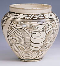 磁州窯這時(shí)異軍突起,形成了蜚聲南北的龐大窯系,同時(shí)創(chuàng)造性地將中國畫技法巧妙地運(yùn)用到了瓷器的裝飾之中,設(shè)計(jì)出白底黑花的品種,打破了當(dāng)時(shí)瓷器以單色釉為代表的裝飾格局。這種白底黑花是磁州窯在宋代創(chuàng)立不久,由工匠們創(chuàng)造的一種全新的裝飾方法。[詳細(xì)]
