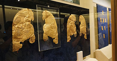據(jù)悉,這組秦人金飾片出自甘肅大堡子山遺址,可能是棺飾物或馬的盔甲。在上世紀90年代,由盜墓團伙販賣流失海外。這批金飾片的回歸對研究秦人在周朝的歷史有著重要的意義。同時也為我國對海外流失文物的追索提供了范本。