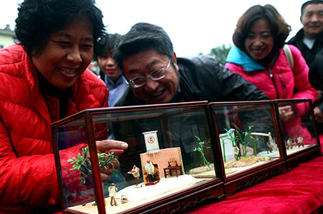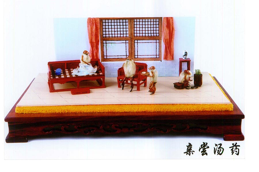 孝感動(dòng)天、戲彩娛親、鹿乳奉親、百里負(fù)米、嚙指痛心……二十四孝想必大家都有所了解,作為北京非物質(zhì)文化遺產(chǎn)的毛猴制作技藝您也許聽(tīng)說(shuō)過(guò),但是,通過(guò)毛猴制作技藝這一非物質(zhì)文化遺產(chǎn)的形式來(lái)展示二十四孝的故事,您可能是第一次聽(tīng)說(shuō)?!懊铩惫に噷?duì)于很多市民來(lái)說(shuō)很熟悉,但是真正近距離了解“毛猴”的機(jī)會(huì)并不多,非遺傳人“毛猴”藝術(shù)家張鳳霞?xì)v時(shí)幾個(gè)月精心制作的“二十四孝”故事毛猴展示讓現(xiàn)場(chǎng)觀眾大飽眼福,贊嘆不已。[詳細(xì)]
