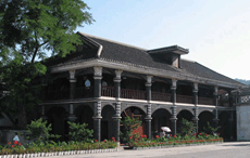 遵義會(huì)議會(huì)址在貴州遵義老城子尹路(原名琵琶橋)東側(cè),原為黔軍25軍第二師師長(zhǎng)柏輝章的私人官邸,修建于30年代初。整個(gè)建筑分主樓、跨院兩個(gè)部分。主樓為中西合璧,臨街有八間鋪面房,當(dāng)年為房主經(jīng)營醬菜及顏料紙張。鋪面居中有一小牌樓(會(huì)址大門臨街),大門正中高懸巨匾,那是毛澤東于1964年11月題寫的黑漆金匾,上有“遵義會(huì)議會(huì)址”六個(gè)大字,蒼勁有力,金碧輝煌。(此為毛澤東為全國革命紀(jì)念地題字的唯一一處)。街面房連接主樓與跨院之間有一座青磚牌坊。