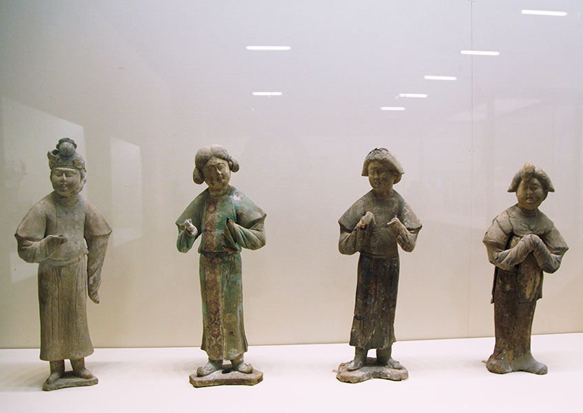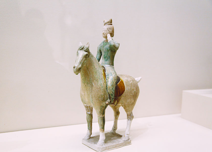 女俑因其優(yōu)美的形體與服飾給人以美的享受,尤其是漢唐時(shí)代,女俑作為一種文物符號(hào)深刻地表現(xiàn)了所處時(shí)代的精神風(fēng)貌。這些絲綢之路上的“女神”,曲眉豐肌,儂麗多態(tài),多著胡裝,是絲綢之路上文化交流、胡漢融合的體現(xiàn)。唐朝寬容開(kāi)放,婦女可以拋頭露面到市街游玩,還可以參加打球、射獵等活動(dòng)。女俑有的身著女裝,嫵媚婀娜;有的身著胡服或男裝,英姿颯爽,展現(xiàn)了唐代女子開(kāi)朗自信的精神風(fēng)貌。[詳細(xì)]