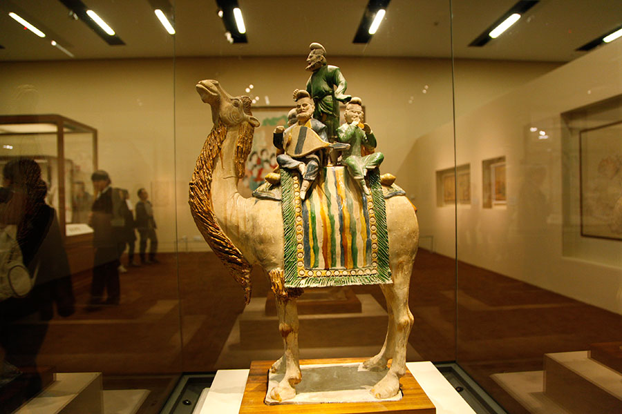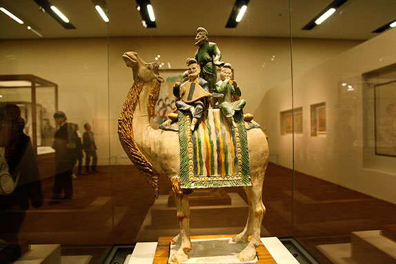 中世紀(jì)的中國(guó)具有超強(qiáng)的綜合國(guó)力和豐富的物產(chǎn),吸引了無(wú)數(shù)胡商千里迢迢來(lái)到中原?!吧衬邸?駱駝,以其默默無(wú)聲的千年負(fù)載,成為“絲綢之路”當(dāng)之無(wú)愧的象征。胡商以這種特殊的運(yùn)載工具,背負(fù)寶石、香料、瑪瑙而來(lái),又滿載絲綢、瓷器、茶葉而歸,異域的禮俗、宗教和文化也隨之紛至沓來(lái),胡風(fēng)禮俗、胡樂(lè)歌舞成為盛極一時(shí)的長(zhǎng)安風(fēng)尚。他們?yōu)闁|西方文化交流和貿(mào)易往來(lái)作出了特殊貢獻(xiàn),并播下了友誼火種。唐代強(qiáng)盛,于西域各地置都護(hù)府,使?jié)h代開(kāi)拓的“絲綢之路”重新暢通。騎駝陶俑塑造了盛唐時(shí)西域康國(guó)人東來(lái)中夏的情景,表現(xiàn)了他們?cè)谖覈?guó)經(jīng)商之暇,戲猴、騎駝漫游情趣。[詳細(xì)]