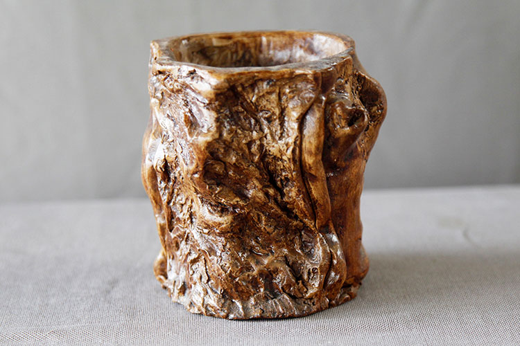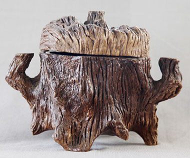 枯木陶的創(chuàng)作基礎(chǔ)源于大自然,仿照枯木的樹結(jié)、樹皮等,甚至描摹出蟲咬的紋路和裂紋,通過陶土直接在樹上按壓成模,再根據(jù)模樣進(jìn)行藝術(shù)加工,制成現(xiàn)在看到的枯木陶作品。 與其他制陶工藝相比,“枯木陶”的制作有著特殊性,雖然它歸屬于“仿生陶類”,但它體現(xiàn)的最終效果是十分逼真的。在沒有親自用手撫摸的情況下,基本上看不出它是陶器。這就是它的絕妙之處。枯木陶的制作原料是產(chǎn)自通州運(yùn)河邊的澄漿泥,可謂是通州文化的象征,曾作為通州直隸府饋贈(zèng)中外人士的政府性禮物。如今通州民間藝術(shù)家協(xié)會(huì)也多用枯木陶作為饋贈(zèng)中外友人的官方禮物。[詳細(xì)]