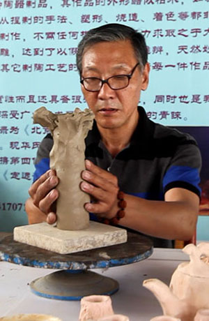 “枯木陶”的原料最好是老北京的沾土,也就是大家所知的澄漿泥。現(xiàn)在通州、房山都有膠泥,取到后還需要風(fēng)干,然后制成漿。