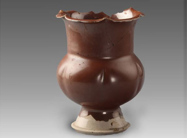 宋代當(dāng)陽(yáng)峪窯醬釉尊 六瓣花口,造型新穎別致