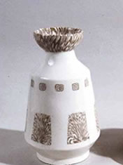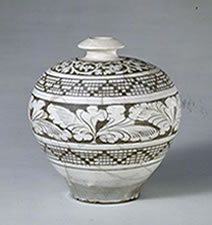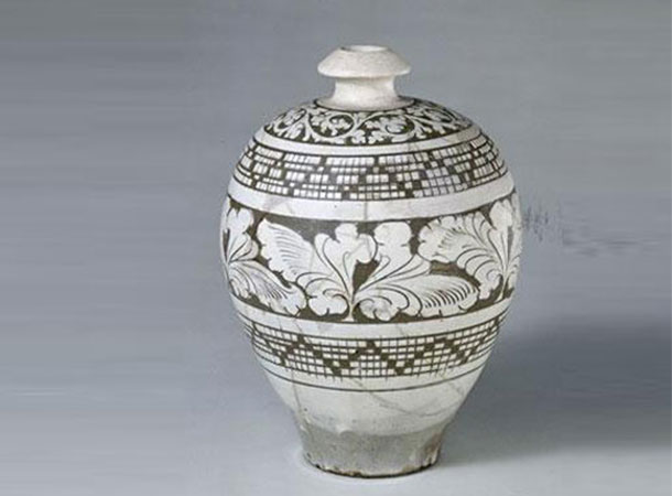 剔劃花瓷是當(dāng)陽(yáng)峪窯最為精美的品種之一。當(dāng)陽(yáng)峪窯的窯工從千里之外的耀州窯請(qǐng)回窯神百靈翁的同時(shí),也將耀州窯的刻剔工藝學(xué)到了手,并將刻、剔、劃技術(shù)發(fā)展到了極高的水平。主要品種有:白地剔花:是在坯體上施白色化妝土,用工具劃出花紋輪廓,再將輪廓之外的化妝土剔掉,露出胎地,施透明釉燒成。黑釉剔花填白:這是當(dāng)陽(yáng)峪窯的高級(jí)制品[詳細(xì)]